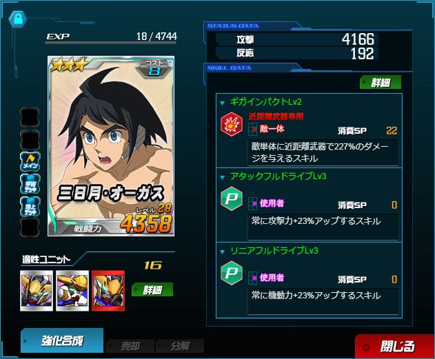 100連のバルバトスとパイロットのミカを重点的に育てたいです。